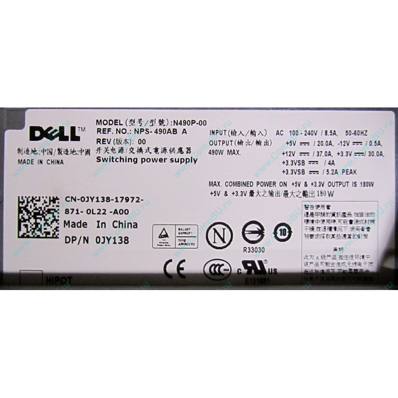 Корпус (case): серверный корпус Dell (FullTower), установлен блок питания 490W Dell N490P-00 (REF.NO: NPS-490AB A)